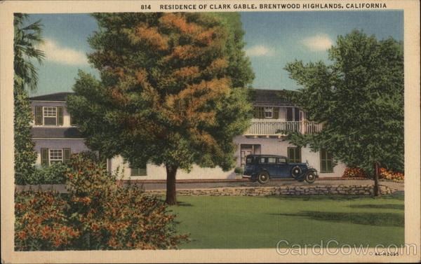 Front: 814 RESIDENCE OF CLARK GABLE, BRENTWOOD HIGHLANDS, CALIFORNIA 是是 4 A-H2095 ETE FRE Back: WESTERN PUBLISHING & NOVELTY CO., LOS ANGELES, CALIF.