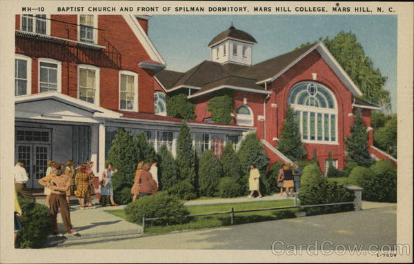 BAPTIST CHURCH AND FRONT OF SPILMAN DORMITORY, MARS HILL COLLEGE, MARS HILL, N. C.