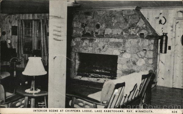 INTERIOR SCENE AT CHIPPEWA LODGE, LAKE KABETOGAMA, RAY, MINNESOTA.