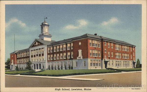 Front: 7A-H3864 High School, Lewiston, Maine CE Back: "C.T. ART-COLORTONE" REG.U.S. PAT. OFF. MADE ONLY BY CURT TEICH & CO., INC., CHICAGO 1,50
