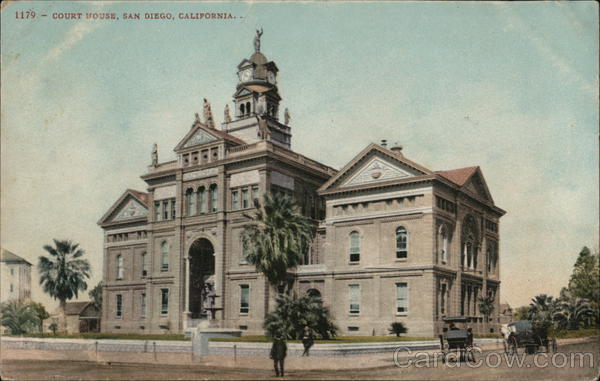 Front: 1179 - COURT HOUSE, SAN DIEGO, CALIFORNIA.. 1 Back: EDWARD H. MITCHELL. PUBLISHER, SAN FRANCISCO, THIS SPACE Mrs.R. HITL ** S.BR BRENT MOUR HOUSE,