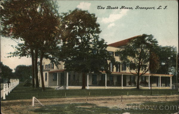 Front: The Booth House, Greenport, L. I. Back: श्र Libiside for Correspondence July 4 POSTERD gust got here before the rain had a fine ride to day How is Sophia mn اسم 738 JUL 5 2 PM RT Miss Emily Eryth Lear arverence Ave Hasbrouck Hgts N.Q.