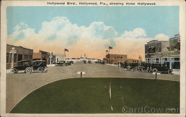 Front: Hollywood Blvd., Hollywood, Fla., showing Hotel Hollywood. ლი 19444 Back: Published by J. N. Chamberlain, Miami, Fla. MADEMUSA IN M