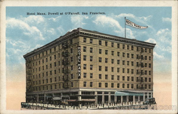 Front: Hotel Manx, Powell at O'Farrell, San Francisco. HOTEL MANX HOTEL MANK Back: E. C. KROPP CO., MILWAUKEE 25956 N HERE