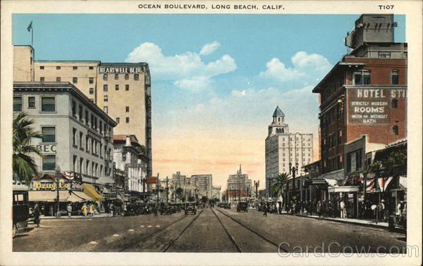 Front: OCEAN BOULEVARD, LONG BEACH, CALIF. HEARTWELL BLDG BEC Drug Co Cas T107 HOTEL STI STRICTLY MODERN ROOMS WITH OR WITHOUT BATH Back: BB BERIDGE MASS 129620 000010 TICINOR QUALITY VIEWS