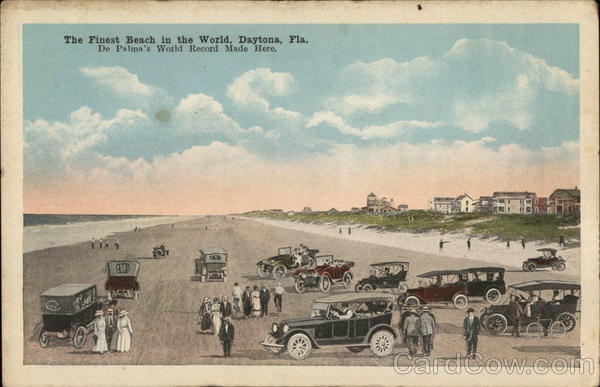 Front: The Finest Beach in the World, Daytona, Fla. De Palma's World Record Made Here. Caro R Back: E. C. KROPP CO., MILWAUKEE 15. Интел 1909-Day BISACHS- ALTOS DayTown BEACH FAR. 22541 N HERE