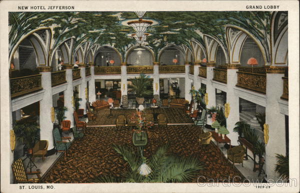 Front: NEW HOTEL JEFFERSON GRAND LOBBY ST. LOUIS, MO. 1929-29 Back: MADE BY CURT TEICH & CO., INC., CHICAGO, U. S. A.