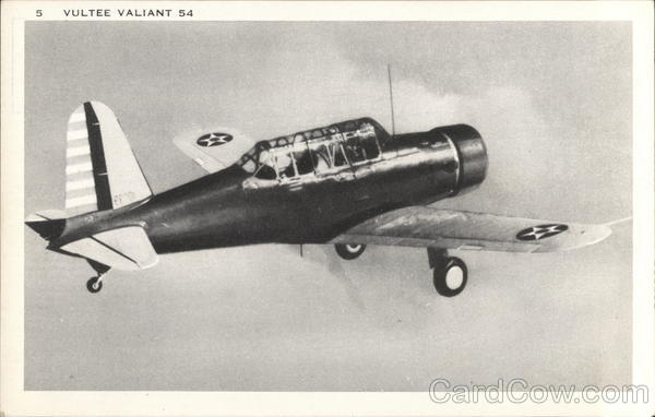 Front: 5 VULTEE VALIANT 54 epor Back: MANUFACTURED BY LONGSHAW CARD CO., LOS ANGELES, CALIF. LOSE CARD 5.00 ARTMALIAN REJUV HERE