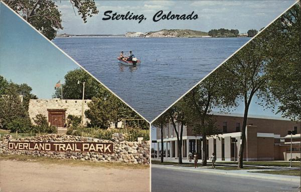North Sterling Reservoir is at the top of this picture. It offers boating, fishing, water skiing. At left, Overland Trail Museum depicting Sterling's beautiful parks and overnight camping facilities. At right, is the outstanding Northeastern Junior College. |