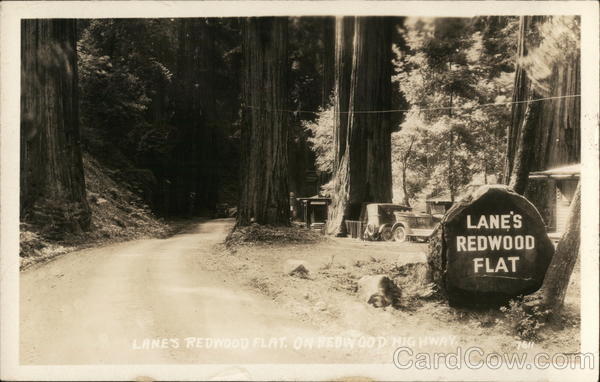 Front: EDWOOD. LANE'S REDWOOD FLAT LANE'S REDWOOD FLAT. ON REDWOOD HIGHWAY. Back: BAZO 2 STAMP O HERE NOE