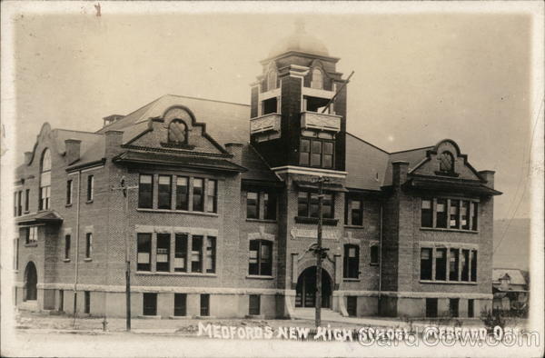 Front: HIGH-S MEDFORDS NEW RIGH SCHOOL MEDFORD ORE Back: to 1038 0008 fulan, sprcftratiegeĊż vaci 10-39 Nog High School, Medford, Ore. (Take out pole The Pacific, San Francisco,