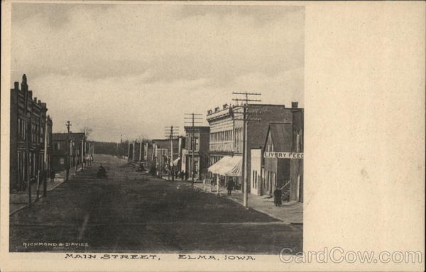 Front: RICHMOND & DAVIES. MAIN STREET, ELMA, JOWA. LIVERY FEED Back: Correspondence. This space is for the Domestic 1 Ct. Foreign 2 Cts. THE ALBERTYPE CO.j BROOKLYN, N.Y.