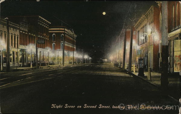 Night Scene on Second Street, looking West, Mishawaka, Ind.