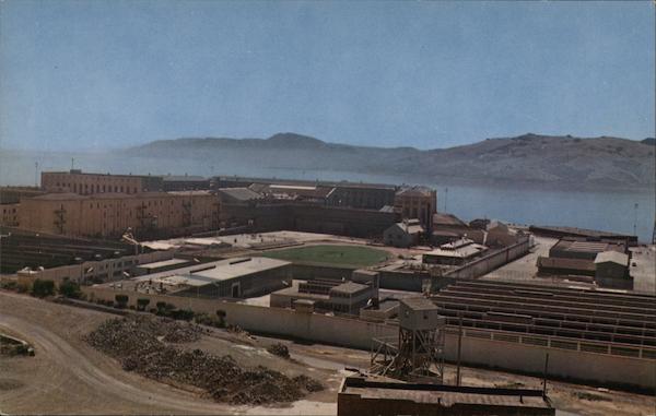 Front: 117 HALII Back: Recreation field, îndustrial area and back view of San Quentin Prison SC8236 COLOR Mike Roberts BERKELEY 2, CALIF.