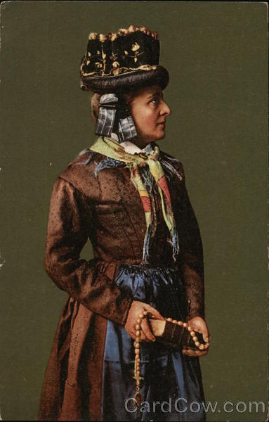 Woman Wearing Hat and Brown Dress Holding Rosary, Book