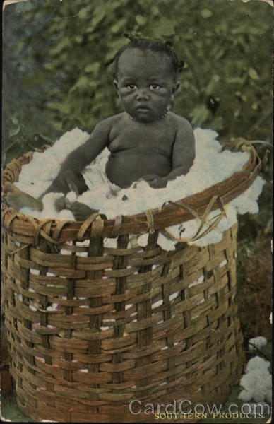 Southern Products - Black Baby in Basket of Cotton