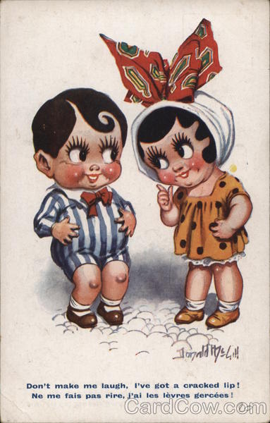 Front: Donald Hye Lill Don't make me laugh, I've got a cracked lip! Ne me fais pas rire, j'ai les lèvres gercées ! 20 Back: Inter-Art Co., Florence House, Barnes, London, S.W. "COMIQUE" Series. British Manufacture Throughout. No. 2780 20
