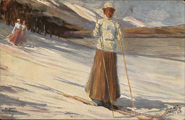 Front: ALBERT MAENNUMEN Orletter of Back: SPORT IN THE ALPS. Raphael Tuck & Sons' "OILETTE" Regd.] Postcard 4087. ART PUBLISHERS TO THEIR MAJESTIES THE KING AND QUEEN. By Appointment. SPREE TEAN SARK CARTE POSTALE. ARTIST Processed in Bavaria.