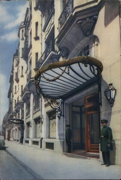 Front: ****** Amer LE BRISTOI Back: POSTCARD COLLECTION JEFFREY MOREAU Hôtel "LE BRISTOL", Paris Entrée principale Principal Entrance Adr. télégr.: Bristonoré OF Élysées Inter. 266-267-268 Draeger, Imp. Procédé 301 ‒‒‒‒‒‒