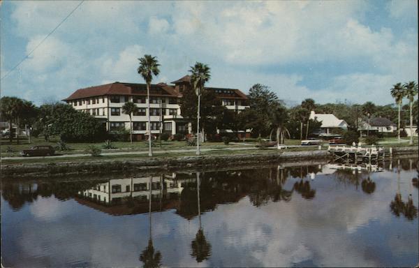 LAVIN NEW SMYRNA BEACH HOTEL Riverside Drive New Smyrna Beach, Fla. Pub. & Photo by Dexter Photo Service, 169 Madison Ave., Daytona Beach, Fla. 98634A Genuine Natural Color Made by DEXTER PRESS, Inc., West Nyack, N. Y. Dester WEST NYACK NY. HERE