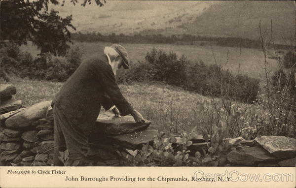 Front: Photograph by Clyde Fisher John Burroughs Providing for the Chipmunks, Roxbury, N. Y. Back: POST CARD