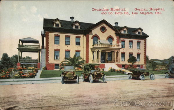 Front: Ⓒ150198 Deutsches Hospital. 453 So. Soto St., German Hospital, Los Angeles, Cal. 10 Back: San Francisco. Pub. by The O. Newman Company. Los Angeles, JNO HORN COLORPRINT CO LOS ARGELES UM Cuba 1c: 2c
