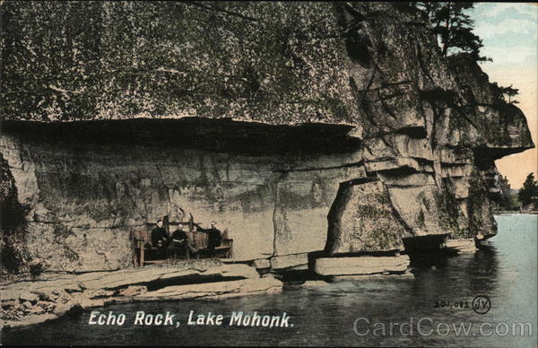 Front: Echo Rock, Lake Mohonk. 104, 082 (JVA) Back: The Valentine & Sons' Publishing Co., Ltd. Printed in Gt Britain SOUVENIR POST GARD