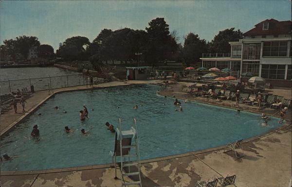 Scene of Pool and Dining Room WALBER'S ON THE DELAWARE Famous for sea food since nineteen seven Essington, Pa. • PLACE : STAMP HERE Post Card Color by Dexter Color New York, Inc., 274 Madison Ave., N.Y.C. Photographed by Wanderlust 76657-B