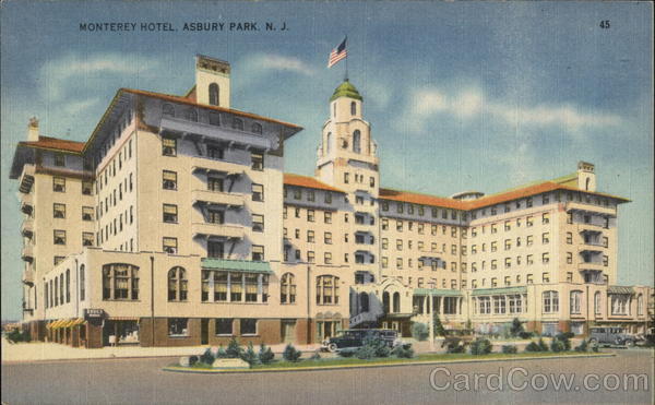 Front: 45 MONTEREY HOTEL. ASBURY PARK, N. J. LEEE Back: MADE IN U, S. A TICHNOR QUALITY VIEWS" REG. U.S. PAT, OFF. MADE ONLY BY TICHNOR BROS. INC., BOSTON, MASS, 63900 STAR STATIONERY CO., NEWARK, N. J.