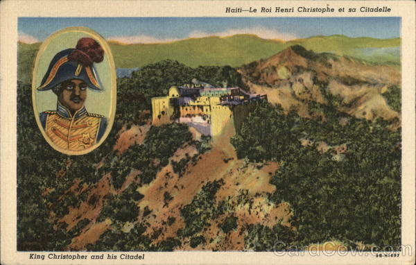 Front: Haiti-Le Roi Henri Christophe et sa Citadelle King Christopher and his Citadel 9B-H1897 Back: EDITION PAUL COUBA-REPRODUCTION INTERDITE 45w 28/8 MADE IN U.S.A