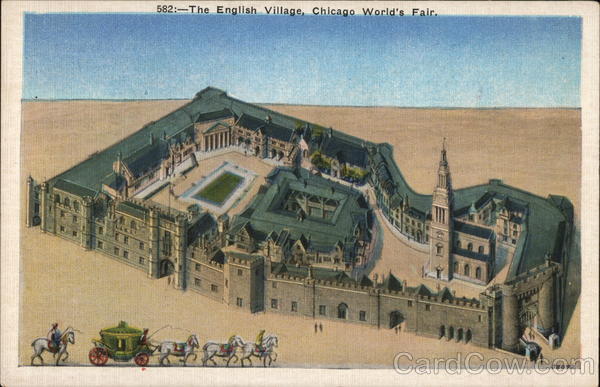Front: 582:-The English Village, Chicago World's Fair. TEE EE Back: Pub. by Gerson Bros., Chicago, Ill. 轉為口老機过3成。 CENTURY OF PROGRESS CHICAGO WORLD'S FAIR
