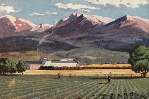 | Colorado's mountains, its sparkling lakes, tall pines, colorful canyons, invigorating climate, and the hospitality of its people lured throngs of vacationists in peacetime. Its agricultural products are sugar beets, grain, cattle and other products of farm and ranch. Its mines produce quantities of copper, iron, zinc, lead, coal and many rare minerals. This card is No. 3 of a series featuring each state served by the Union Pacific Railroad. |