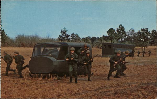 | Using mock helicopters, trainees in advanced individual training (AIT) infantry, learn proper seating, exit and assumption of combat ready positions. The 53,000 -acre Fort Jackson, located in the capital city of Columbia, is one of the Armys's largest basic training centers. |