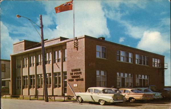 Front: BUREAD 花花 SHEDIAC 2025 02號 無 Back: No. I BUREAU DE POSTE, Shediac, N.B. SHEDIAC POST OFFICE PUBLIE PAR; LES AGENCES KENT ENR., 1068 SALABERRY ST., QUEBEC, P. Q. ات مدون RCL TIMBRE ICI FAIT AUX E.U.: K-11962