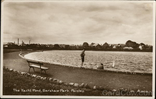 Front: The Yacht Pond, Barshaw Park, Paisley. A.2216. Back: VALENTINE'S فسد الله away from THROUGHOUT THIS IS A REAL two of three minutes this sparks. Yeark Isobel Be. 38-1 GREAT BRITAIN