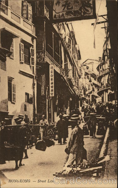 Front: CITE IMIDE RPH HONGKONG. Han 宋若藏克生質建商会 時安白米油塘 Street Life. + Back: Country of Destination : meas china KOMOR & KOMOR. Art Curios, Alexandra Building, HONGKONG Branches: Yokohama, Shanghai