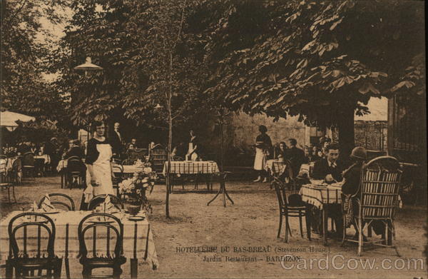 Front: SO HOTELLERIE DU BAS-BREAU (Stevenson House) Jardin Restaurant BARBIZON Back: IMP. H. BOUQUET, PARIS Adresse
