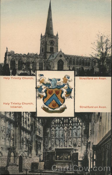 Front: Holy Trinity Church, Holy Trinity Church, Interior, STRATFORD-ON-AVON Stratford-on-Avon. Stratford-on-Avon. Back: H. Neale, 4 Henley Street, Stratford-on-Avon. Write Here for Inland Postage only. Written Here.