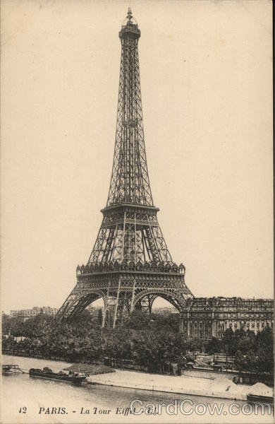 Front: MY 12 政以和森科船與前都 CLOCCA PARIS. La Tour Eiffel. - LL an Back: LUVY EI NEURBEIN REUNIS, 44, RUB LETELLIER, PARIS N'écrire que sux le côté réservé à la correspondance