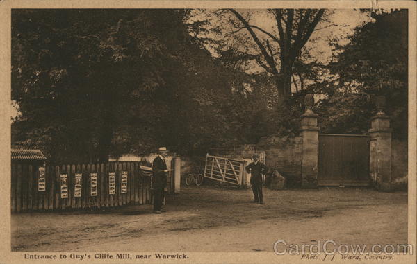 Front: 15414 17 Entrance to Guy's Cliffe Mill, near Warwick. Photo, J.J. Ward, Coventry. Back: "Sepia Photo-Art" Series No. 1106. Copyright. J. J. Ward, Coventry. d. STAMP. Id.