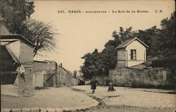Front: 227. PARIS MONTMARTRE La Rue de la Bonne C. M. Back: Certains pays étrangers n'acceptant pas la correspondance de ce coté se renseigner à la Poste M
