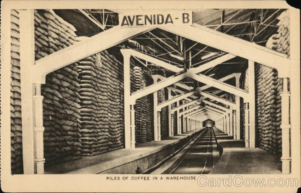 un AVENIDA - B AL AIL PILES OF COFFEE IN A WAREHOUSE