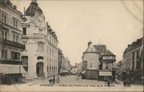 AUXERRE. - L'Hôtel des Postes et la Place de la Fontaine.