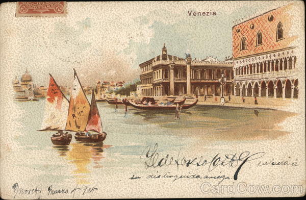 Front: TEEN RICH Onoret+ Marks & gut Venezia воно 17 mm Iederevsebiterin distinguida amiga. نا Back: 81 CARTOLIN POSTALE (CARTE POSTALE POSTKARTE) LE/POSTKARTE) 100 4 MAR ARTEROS: (......... A Dia Maria Celia Gandos Camara 101 Gindad dagir .…..) RUG