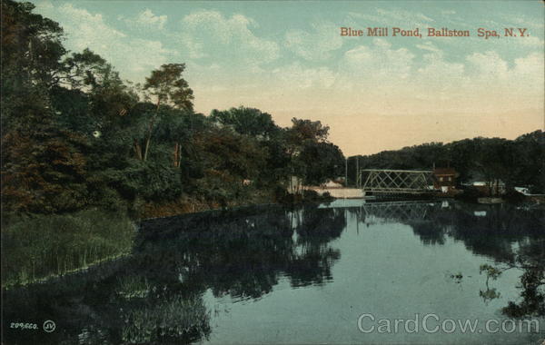 Front: 204,660. V Blue Mill Pond, Ballston Spa, N.Y. Back: The Valentine & Sons' Publishing Co., Ltd., New York THROUGHOUT THE WORLD. Correspondence, V&SONS FAMOUS CARD.
