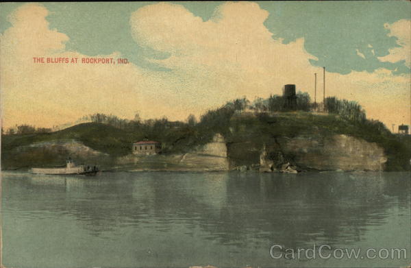 Front: THE BLUFFS AT ROCKPORT, IND. AM TESTON 6 Back: T. C. Basye, Rockport, Ind, AND CANADA, TWO CENTS