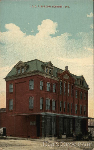 Front: 1. 0. 0. F. BUILDING, ROCKPORT, IND. 1883 Back: T. C. Basye, Rockport, Ind. AND CANADA, ***...