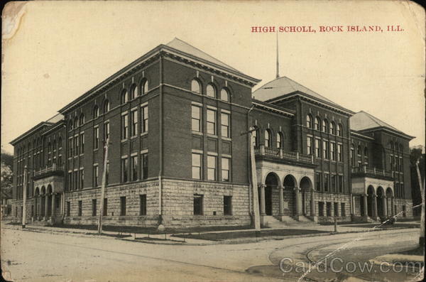 Front: HIGH SCHOLL, ROCK ISLAND, ILL. Back: A. W. CRAMPTON, PUB, ROCK ISLAND. ILL. THIS SPACE IS RESERVED FOR MESSAGE Post Gard THE SPACE ABOVE IS RESERVED FOR POSTMARK IS POS- SESSIONSPIC MEXICAN FOREIGN 2c