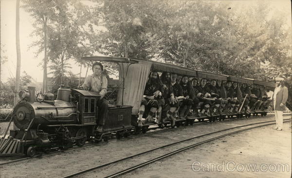 Miniature Train with Baseball Players as Passengers