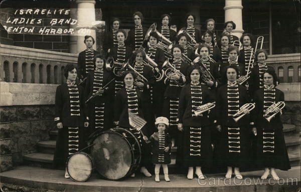 Front: ISRAELITE 11 LADIES BAND ENTON HARBOR 11111 ΕΙΚΟ 19 W1111. 11 COMIL 111111 111111 Τέλεξε ܐܐܐܐܐܐ | Back: EDEN SPRINGS, ISRAELITE HOUSE OF DAVID BENTON HARBOR, MICH., U. S. A. dif ◄ON >> I S